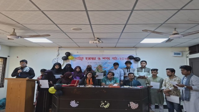 বাংলাদেশ তরুণ কলাম লেখক ফোরাম, কুমিল্লা বিশ্ববিদ্যালয় (কুবি) শাখার ২০২৫–২৬ কার্যবর্ষের নতুন কমিটির কাছে দায়িত্ব হস্তান্তর ও শপথ পাঠ অনুষ্ঠিত হয়েছে।