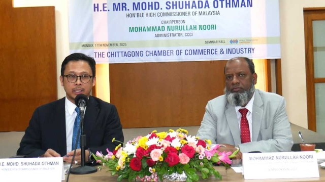 সোমবার (১৭ নভেম্বর) বিকেলে চিটাগাং চেম্বার অব কমার্স অ্যান্ড ইন্ডাস্ট্রি (সিসিসিআই) আয়োজিত মতবিনিময় সভায় এই আহ্বান জানানো হয়। সভায় উপস্থিত ছিলেন বাংলাদেশে নিযুক্ত মালয়েশিয়ার হাই-কমিশনার মোহাম্মদ শুহাদা ওসমান, চেম্বারের সাবেক সভাপতি, ব্যবসায়ী নেতারা এবং কয়েকজন কূটনীতিক।