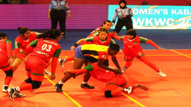 দ্বিতীয় নারী কাবাডি বিশ্বকাপে দারুণ সূচনা করেছে স্বাগতিক বাংলাদেশ। সোমবার মিরপুরের শহীদ সোহরাওয়ার্দী ইনডোর স্টেডিয়ামে ১১ জাতির এই আসরের উদ্বোধনী ম্যাচে উগান্ডাকে ৪২-২২ পয়েন্টে হারিয়েছে লাল–সবুজের মেয়েরা। দুই লোনাসহ পুরো ম্যাচে আধিপত্য দেখালেও প্রথমার্ধে ১৪-১২ পয়েন্টে মাত্র দুই পয়েন্টের লিড নিয়ে বিরতিতে যায় বাংলাদেশ।