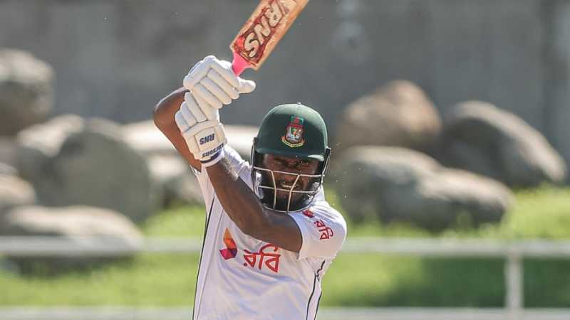 কেমার রোচের বল ওভার দ্য কিপার দিয়ে বাউন্ডারিতে পাঠানোর পর পরের বলেই দুর্দান্ত হুক শটে ছক্কা হাঁকান। এটি ছিল তার টানা তিন টেস্টে তৃতীয় অর্ধশতক। বাংলাদেশের ইতিহাসে এর আগে কেবল জাকির হাসান এই কীর্তি গড়েছিলেন।