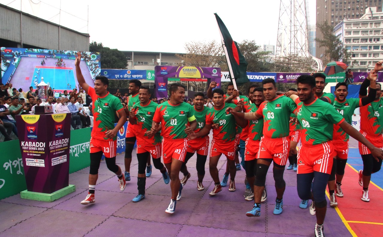 নেপালের বিপক্ষে পাঁচ ম্যাচের কাবাডি টেস্ট সিরিজ ৪-১ ব্যবধানে জিতে শিরোপা ঘরে তুলেছে বাংলাদেশ। সিরিজের পঞ্চম ও শেষ ম্যাচে ৪৫-২৭ পয়েন্টের বড় জয় তুলে নেয় স্বাগতিকরা।