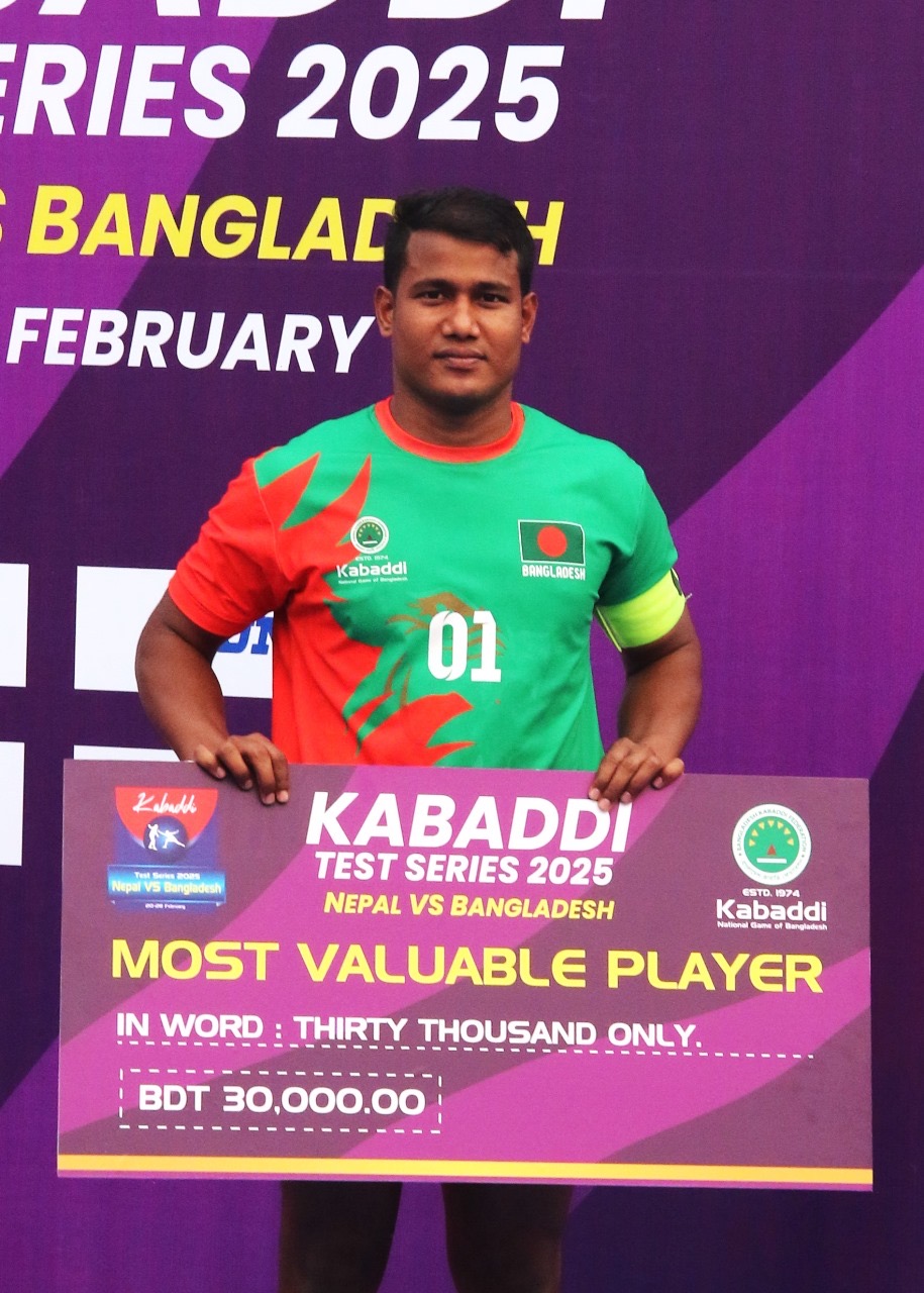 সিরিজ ও ম্যাচ সেরা নির্বাচিত হয়েছেন বাংলাদেশ অধিনায়ক মিজানুর রহমান। সেরা রেইডার হয়েছেন নেপালের অধিনায়ক রোকা মাগার। যৌথভাবে সেরা কেচার হয়েছেন বাংলাদেশের রোমান ও নাসির।